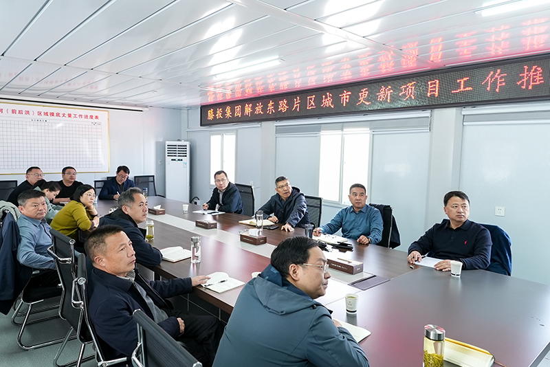 為快速推進解放東路片區(前后洪)城市更新項目啟動,山東滕建投資集團于3月30日在項目指揮部召開工作推進會議。滕投集團董事長侯欽軍,總經理李自海,副總經理黃建民,工會主席王洪全及相關負責同志參加會議。 會議分兩個環節進行。第一環節,李自海帶領項目相關負責同志進行了現場調研,詳細了解了項目現場施