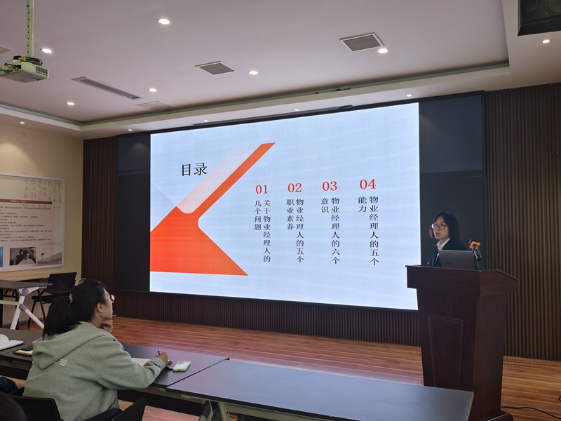 本次培訓(xùn)會(huì)邀請(qǐng)了滕投集團(tuán)熙城國(guó)際誠(chéng)園項(xiàng)目經(jīng)理王芳芳進(jìn)行授課,她圍繞物業(yè)經(jīng)理人應(yīng)具備的五個(gè)職業(yè)素養(yǎng)、六個(gè)意識(shí)、五個(gè)能力等方面進(jìn)行了深入講解。她結(jié)合自身實(shí)際工作案例分析,提出通過建立完善的品質(zhì)管理體系、強(qiáng)化員工培訓(xùn)、引入先進(jìn)科技手段、加強(qiáng)與業(yè)主的溝通與互動(dòng)等品質(zhì)提升策略,為與會(huì)者在未來的工作中提供了寶貴的參考和借鑒。